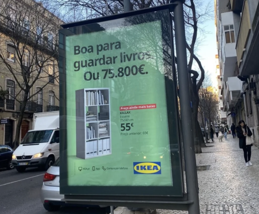 И если смотреть только на российские каталоги и рекламы, мы можем решить, что это повсеместная практика — как ещё завлечь покупателя, если не сентиментальными отсылками и лёгкими, безопасными словесными играми? Но вот яркий пример иного подхода — реклама книжного шкафа IKEA в Португалии. Надпись гласит: «Хорош для хранения книг. Или 75800 евро».