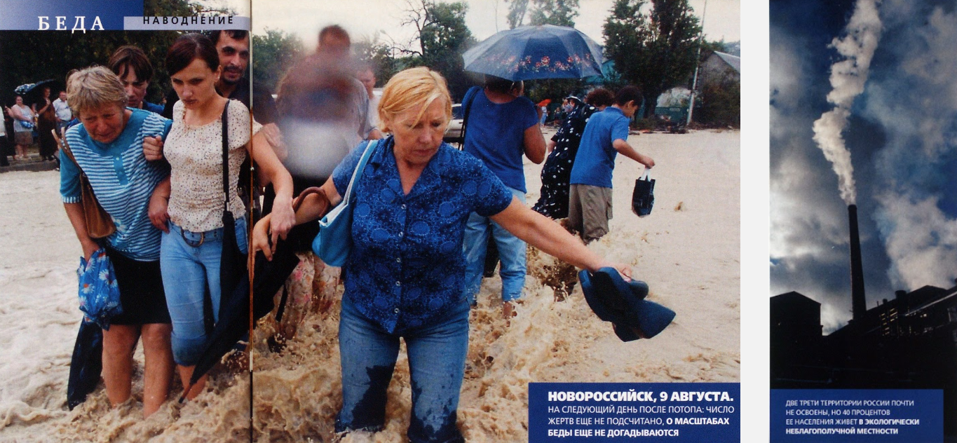 Однако концепция лиминальности может описывать не только состояние отдельного человека, но и общества в целом. Россия в начале 2000-х годов оказалась в этом коридоре, где декорации из прошлого стояли, как и прежде, но внутри не существовало ничего определённого, никакой вписывающейся в эти рамки реальности, никакой чёткой цели впереди. Визуальное выражение лиминальности — одно из самых ярких и считываемых, поэтому мы обратились к архиву фотографий из «Еженедельного журнала», чтобы посмотреть на важнейшие перемены эпохи, попробовать зафиксировать смятение само по себе в разных сферах жизни — от политики до быта, от потребительских привычек до самых основных ценностей.