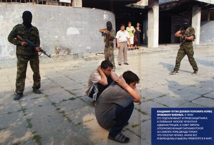 Боевые действия начались сразу после назначения Путина премьером и шли особенно жестоко. К 2000 году основная фаза вроде бы закончилась, но насилие продолжалось ещё долго. Журналисты ЕЖа — в первую очередь Галина Ковальская — регулярно ездили в республику и описывали, что на самом деле происходило в «мирной» Чечне: сёла, в которых ночью исчезали люди, массовые зачистки, фильтрационные лагеря, пытки и убийства, ставшие рутиной. Российская армия вела там свою войну — и с боевиками, и с населением.