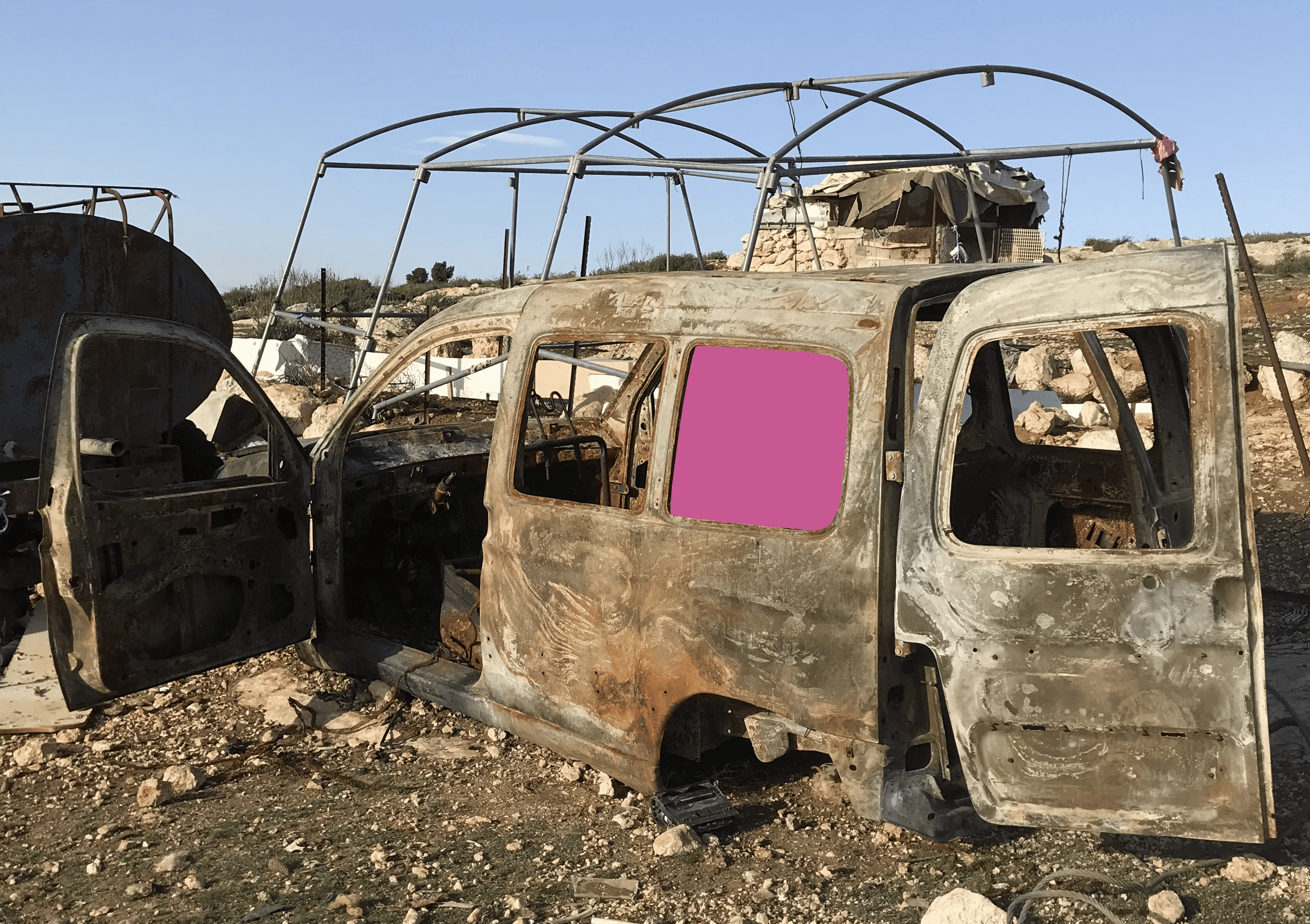 На склоне холма на окраине села белеет остов машины — сожгли поселенцы. Такие атаки — не редкость, хотя чаще евреи приезжают сюда просто подразнить местных, рассчитывая спровоцировать их на драку. Серьёзность их намерений, как правило, понятна издалека: замышляя погром, поселенцы скрывают лицо под масками. Сдачи давать нельзя — палестинцев за это сажают, а на проделки евреев израильская полиция закрывает глаза — засудить поселенца практически невозможно.